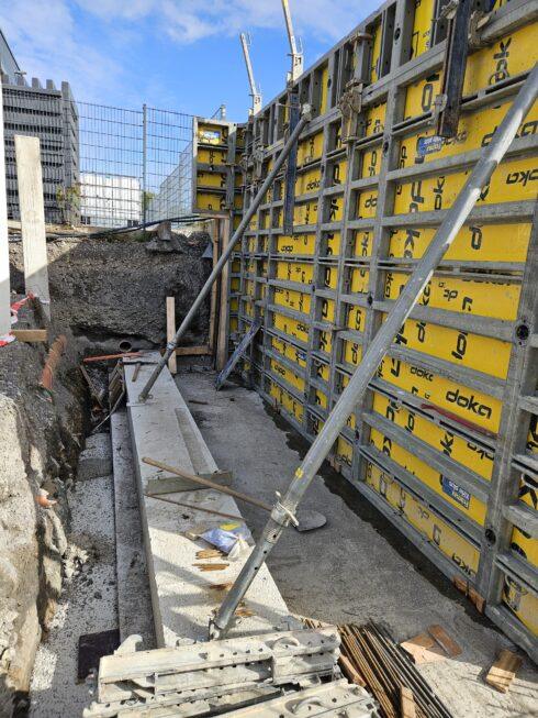 Fortschritt bei der Pfahlgründung – erste Schalungen stehen